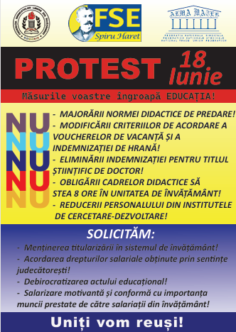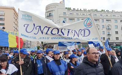 11.08.2025 - UAIC a îngenuncheat în faţa ministrului David. Sindicatele continuî protestele Luna august vine cu veşti proaste pentru angajaţii primei universitîţi moderne a României. Sub aspectul optimizîrii financiare dorite de Ministerul Educaţiei, conducerea Universitîţii "Alexandru Ioan Cuza" din Iaşi creşte norma profesorilor şi taie salariul diferenţiat acordat personalului didactic-auxiliar prin suspendarea sporului de 15%. Strategia financiarî a fost avizatî în Consiliul de Administraţie şi urmeazî a fi prezentatî Senatului UAIC pentru aprobare. Articolul din Ziarul de Iaşi din data de 7 august (click aici) prezintî mîsurile gândite de conducerea universitîţii pentru a acoperi gaura din bugetul pe care ministerul nu-l poate aloca. Planul mîsurilor de austeritate a stârnit nemulţumiri în rândul angajaţilor din Învîţîmânt, fapt pentru sindicatele au pichetat Ministerul Educaţiei şi Cercetîrii. Ziua de 6 august a fost cea de-a şasea zi de protest, la care au participat sindicalişti din Bucureşti, Craiova, Târgu Mureş, Piteşti, Sindicatul UNIO fiind reprezentat un grup format din 9 participanţi, condus de preşedintele Cosmin Dariescu. Protestele vor continua şi în zilele de 8, 11, 12 şi 13 august în faţa Ministerului Educaţiei, iar pe data de 8 septembrie este deja anunţat în Bucureşti un marş de protest cu 30 de mii de participanţi. UNIO va continua sî sprijine acţiunile federaţiilor sindicale, fapt pentru care îşi îndeamnî membrii sî participe la protestele organizate. De ce este important sî nu abandonîm lupta sindicalî acum? Dupî decenii de subfinanţare, de strategii începute şi neterminate de miniştrii vremelnici, Educaţia din România se aflî la un pas de dezastru. Guvernanţii de azi, ajutaţi de viziunea unui ministru servil, doresc sî facî reforme pe stomacul gol. Trebuie sî atragem atenţia cî mîsurile politice gândite cu vistieria ţîrii goalî nu pot aduce decât efecte negative asupra actului educaţional şi asupra condiţiilor de muncî. 28.07.2025 - Guvernul "strânge cureaua" şi distruge învăţământul românesc Sindicatele din Educaţie şi foarte mulţi dintre angajaţii din învăţământ sunt în alertă din cauza măsurilor anunţate de guvernanţi pentru a face economii la bugetul ţării. Recent, Federaţia Sindicatelor Libere din Învăţământ, Federaţia Sindicatelor din Educaţie "Spiru Haret" şi Federaţia Naţională Sindicală "Alma Mater" au transmis Preşedintelui României, Nicuşor Daniel Dan, solicitarea de a nu promulga Legea privind unele măsuri măsuri fiscal-bugetare asumată de Guvern. În documentul comun al celor trei federaţii sindicale (link descărcare comunicat) sunt prezentate argumentele pentru care toate măsurile de economisire şi de reorganizare a învăţământului pot avea efecte extrem de grave asupra angajaţilor din învăţământ, dar şi asupra beneficiarilor procesului de educaţie. Măsurile legislative anunţate de politicieni, care vizează activitatea din învăţământul preuniversitar şi superior, au stârnit îngrijorări şi reacţii şi la nivel local. Articolul publicat în Ziarul de Iaşi (link articol ZDI) ilustrează riscurile la care este expus întreg învăţământul românesc şi blocajele pe care aceste măsuri le pot crea. În acelaşi timp, sindicaliştii se pregătesc să organizeze un amplu marş de protest (30 mii participanţi) pe data de 8 septembrie la Bucureşti. Scopul protestului este să atragă atenţia guvernanţilor asupra necesităţii soluţionării eternelor probleme cu care se confruntă personalul din învăţământul preuniversitar şi superior. În plus, salariaţii din Educaţie dezaprobă măsurile politice gândite pentru diminuarea deficitului bugetar, decizii care vin la pachet cu efecte negative asupra actului educaţional, asupra salariilor şi condiţiilor de muncă. În acest sens, cele trei mari federaţii sindicale au semnat un protocol (link descărcare document) cu Primăria Municipiului Bucureşti pentru desfăşurarea marşului din septembrie. Protocol PMB - Federaţia Sindicatelor Libere din Învăţământ, Federaţia Sindicatelor din Educaţie (click aici pentru a vedea documentul). FSLI FSESH FNSAM - Comunicat comun 24 iulie 2025 (click aici pentru a vedea documentul). Articol Ziarul de Iaşi (click aici). 18.06.2025 - Sindicaliştii din educaţie sunt, astăzi, în grevă japoneză - click aici (Audio - Radio România Iaşi) 17.06.2025 - PROTEST 18 IUNIE 2025 .